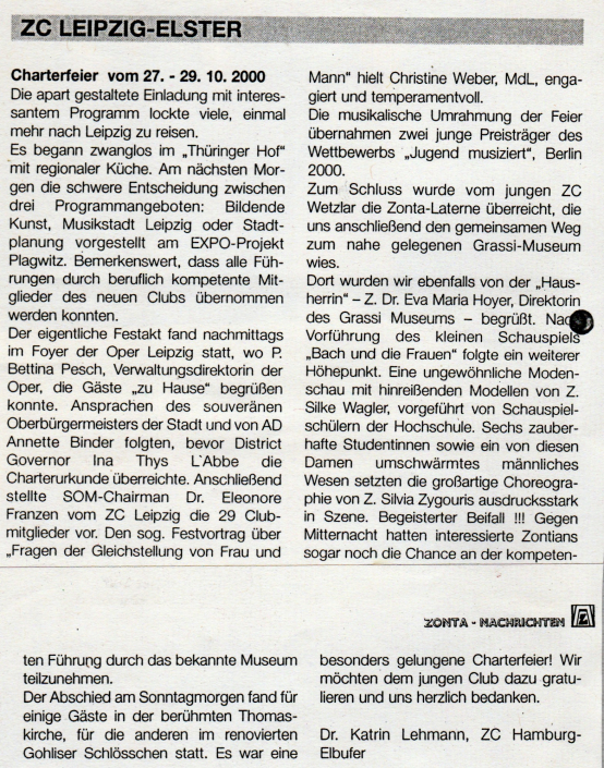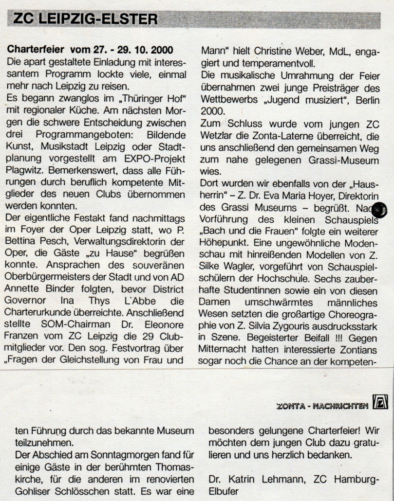 06. November 2010: 10 Jahre Zonta Club Leipzig Elster: Große Jubiläumsfeier