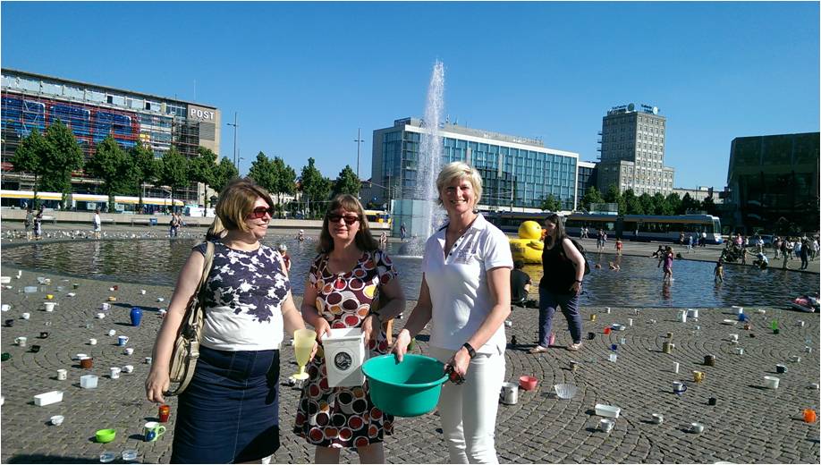 Ca. 1000 Gefäße wurden Auf dem Leipziger Augustusplatz wurden ca. 1000 Gefäße aufgestellt und – stellvertretend für Mut – mit Wasser aus dem Brunnen gefüllt und aufgestellt.
