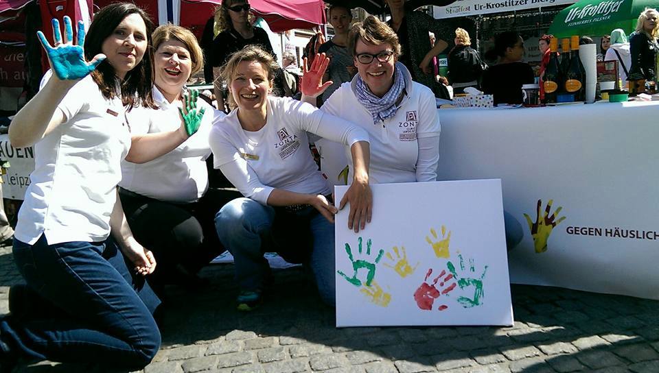 Teilnahme am 1. Leipziger Frauenfestival mit dem Motto Ohne uns würde es Leipzig nicht geben! Auch wir setzten Zeichen! „Meine Hand – GEGEN HÄUSLICHE GEWALT“ eine Aktion des Frauen- und Kinderschutzhauses Leipzig.