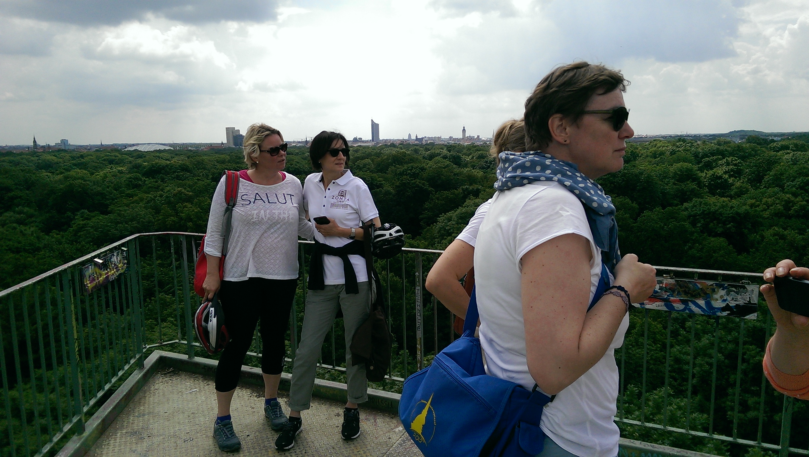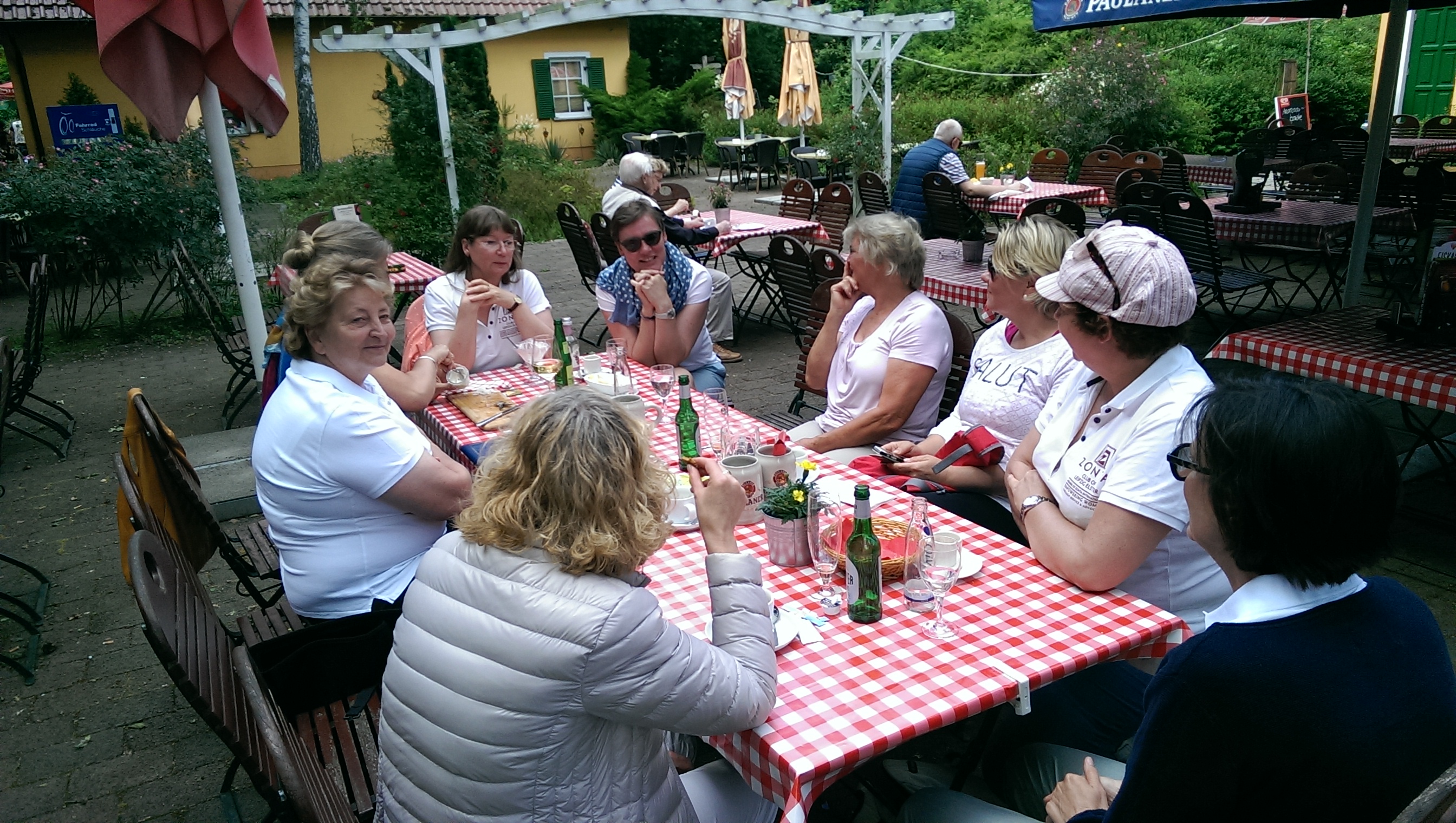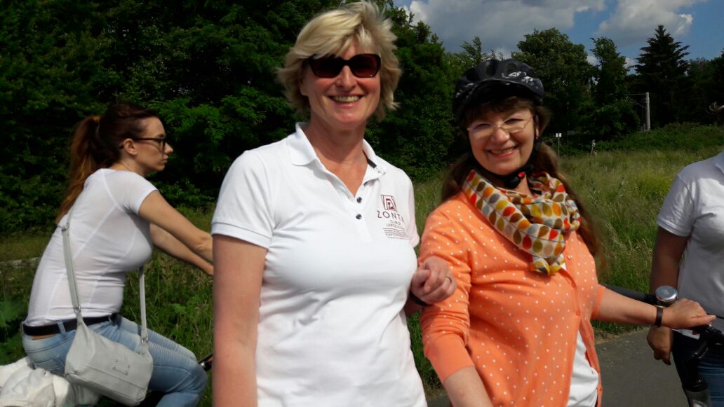 In Erinnerung an die zahlreichen Förderprojekte unseres Clubs starteten wir mit unseren jüngsten Zontians und denen, die es noch werden wollen, eine Radtour quer durch Leipzig. Dabei sind wir nicht nur „unseren“ Zontaspuren gefolgt, sondern haben gleich noch Wissenwertes zur Weißen Elster, der Namensgeberin unseres Clubs, erfahren. Nach der Etappe von 17 km kehrten wir im Biergarten der Domholzschänke ein. Ach, waren die Getränke erfrischend, das Essen lecker und das Ambiente gemütlich! „Dem einen Leid, dem anderen Glück“ so heißt es doch so schön. Ulrikes Fahrradpanne war unser Glück, denn Sie rief ihren rettenden Engel an. Erschienen ist unser langjähriges Zontamitglied Regina Engel, die wir auf diese Weise zur Freude aller, endlich einmal wiedergesehen haben.