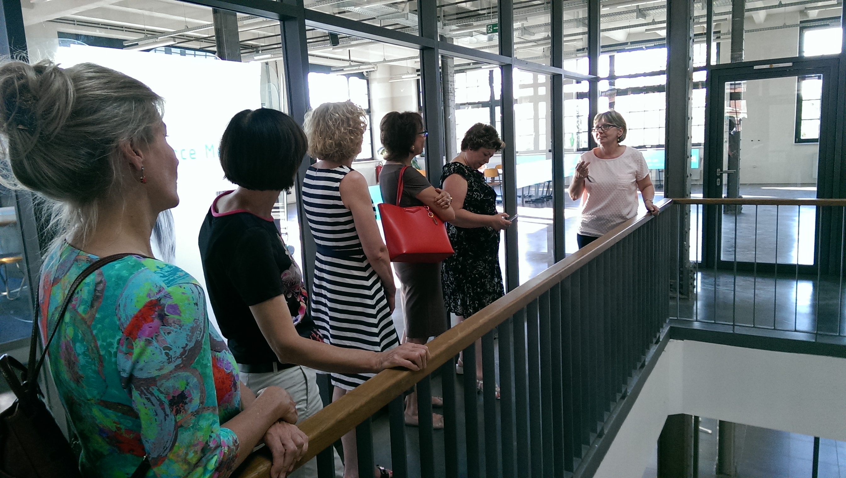 Unser Mitglied Waltraud Bergmann-Gessner zeigte uns das von ihr im Umbau geplante Fabrikgebäude in der Weißenfelser Straße in Leipzig. Jetzt dient das Gebäude als Vertriebszentrum der Schweizer Firma Bucher Emhart Glas, Weltmarktführer für Maschinen zur Herstellung und Prüfung von Glasbehältern. Leipzig liegt im Zentrum des europäischen Vertriebsgebiets. Waltraud konnte mit viel Geschick das historische Ambiente bewahren. Bei einem Glas Sekt wurde die Besichtigung mit einer regen Fragerunde abgeschlossen.