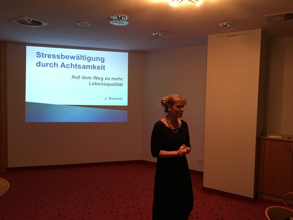 Vortrag von Jana Rohmer zu Stressbewältigung durch Achtsamkeit. Außerden heißen wir neue Clubschwestern herzlich willkommen.