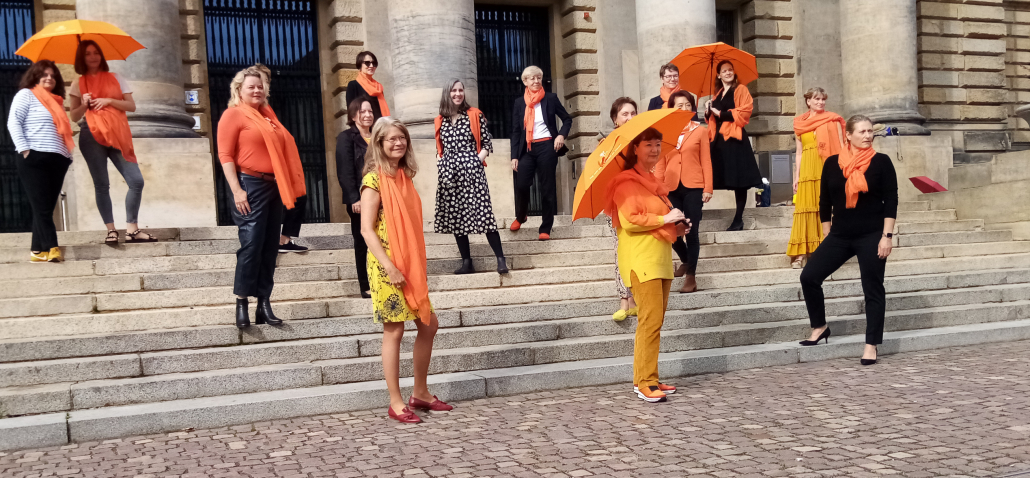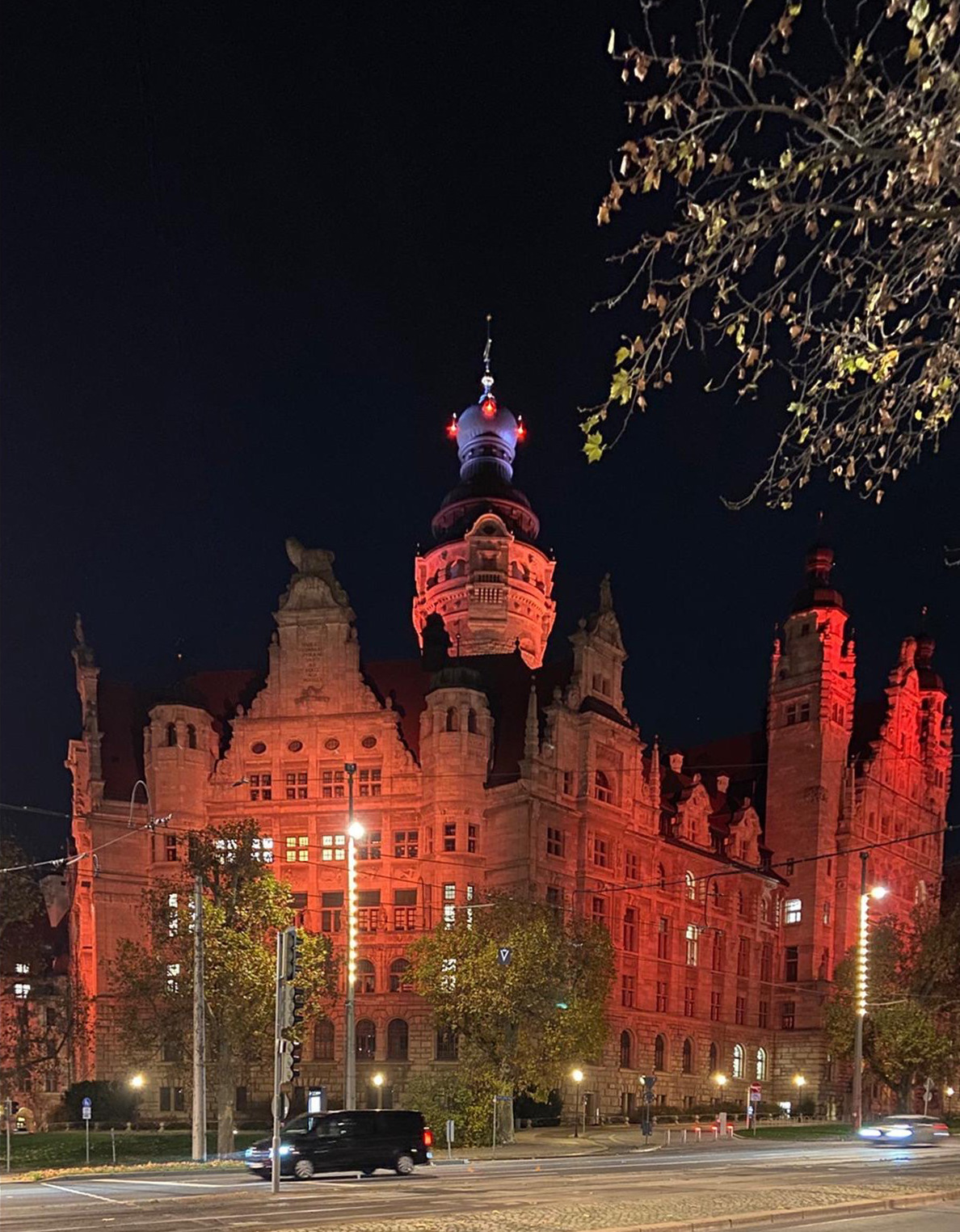 Der Internationale Tag gegen Gewalt gegen Frauen: auf unsere Anregung wurden erste Gebäude in Leipzig orange beleuchtet. Auch die Stadt Leipzig setzte ein Zeichen: das Neue Rathaus leuchtet gegen Gewalt gegen Frauen.