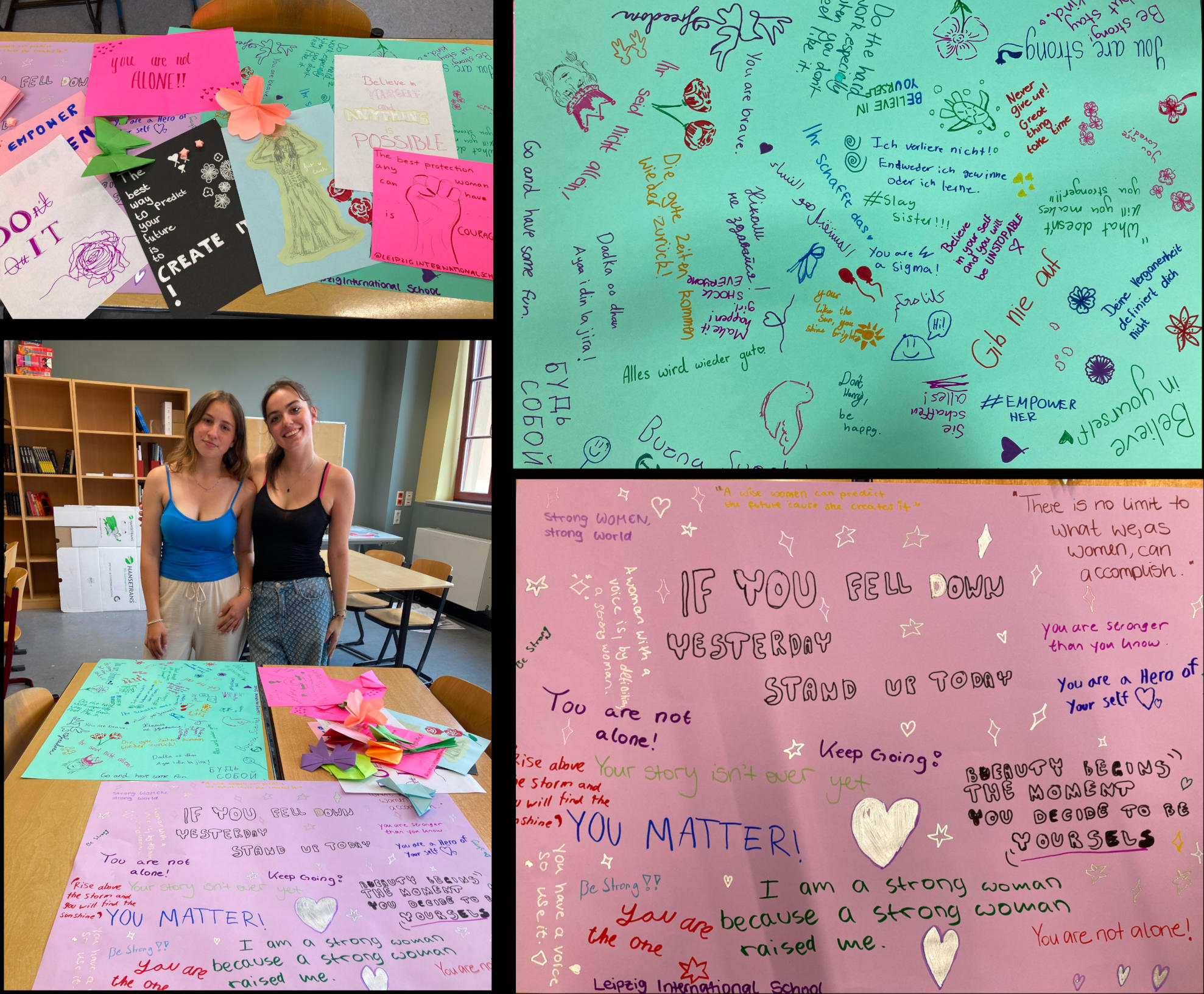 Zum Abschluss des Tages kamen die Leiterin eines Frauenhauses, beantwortete die zahlreichen und vielfältigen Fragen der Schüler und Schülerinnen und nahm begeistert die hübschen Origami-Wesen und die liebevollen, aufbauenden Botschaften in Empfang.